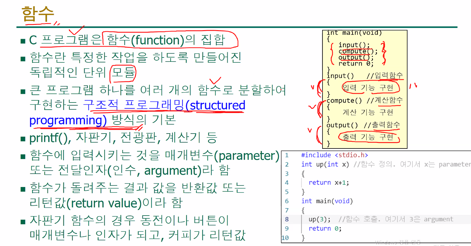 printf("Hello, world!\n"); - scanf: 사용자로부터 입력을 받기 위한 함수로, 다음과 같이 사용됩니다.