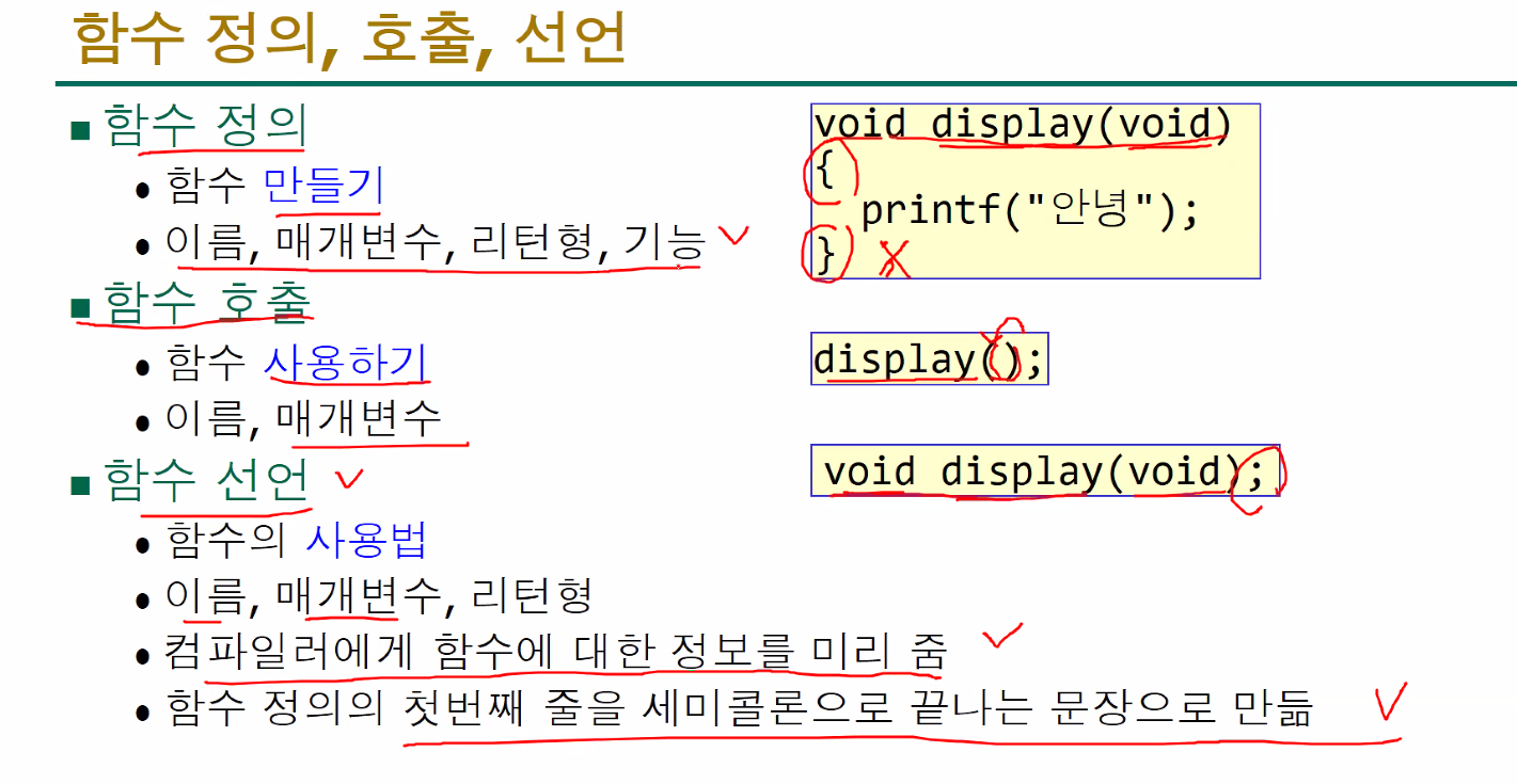 - printf: 화면에 출력을 위한 함수로, 다음과 같이 사용됩니다.
